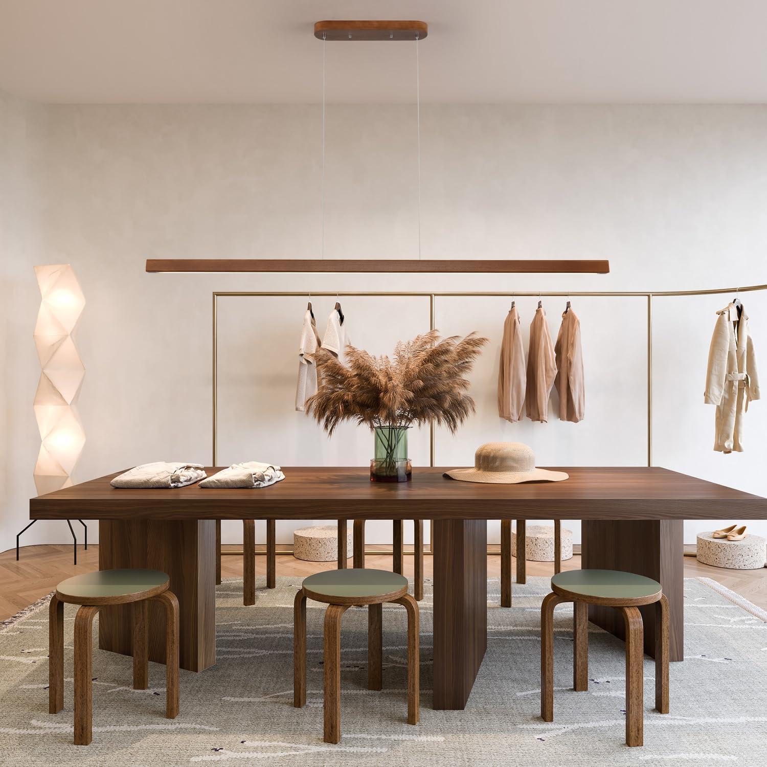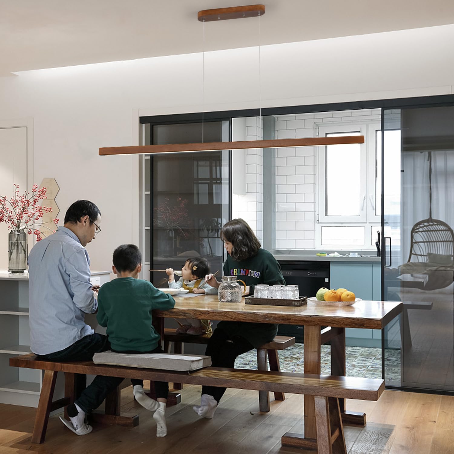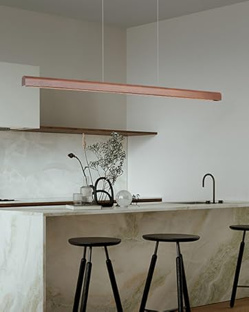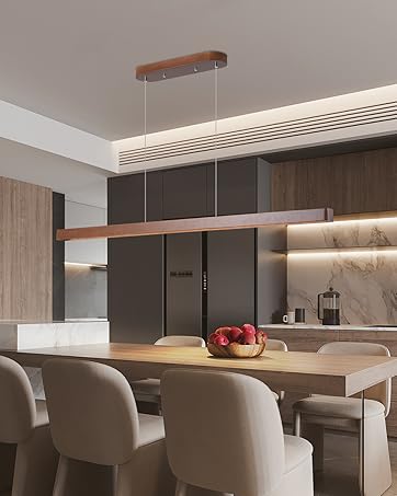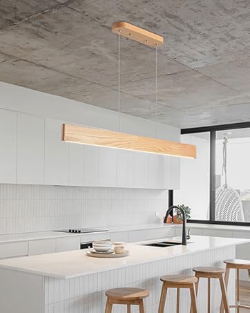 【WIDE APPLICATIONS】:This wood linear pendant light island table lights suitable for any dining room,bar,kitchen island,office,coffee shop,study library this is not just a light,but a work of art.