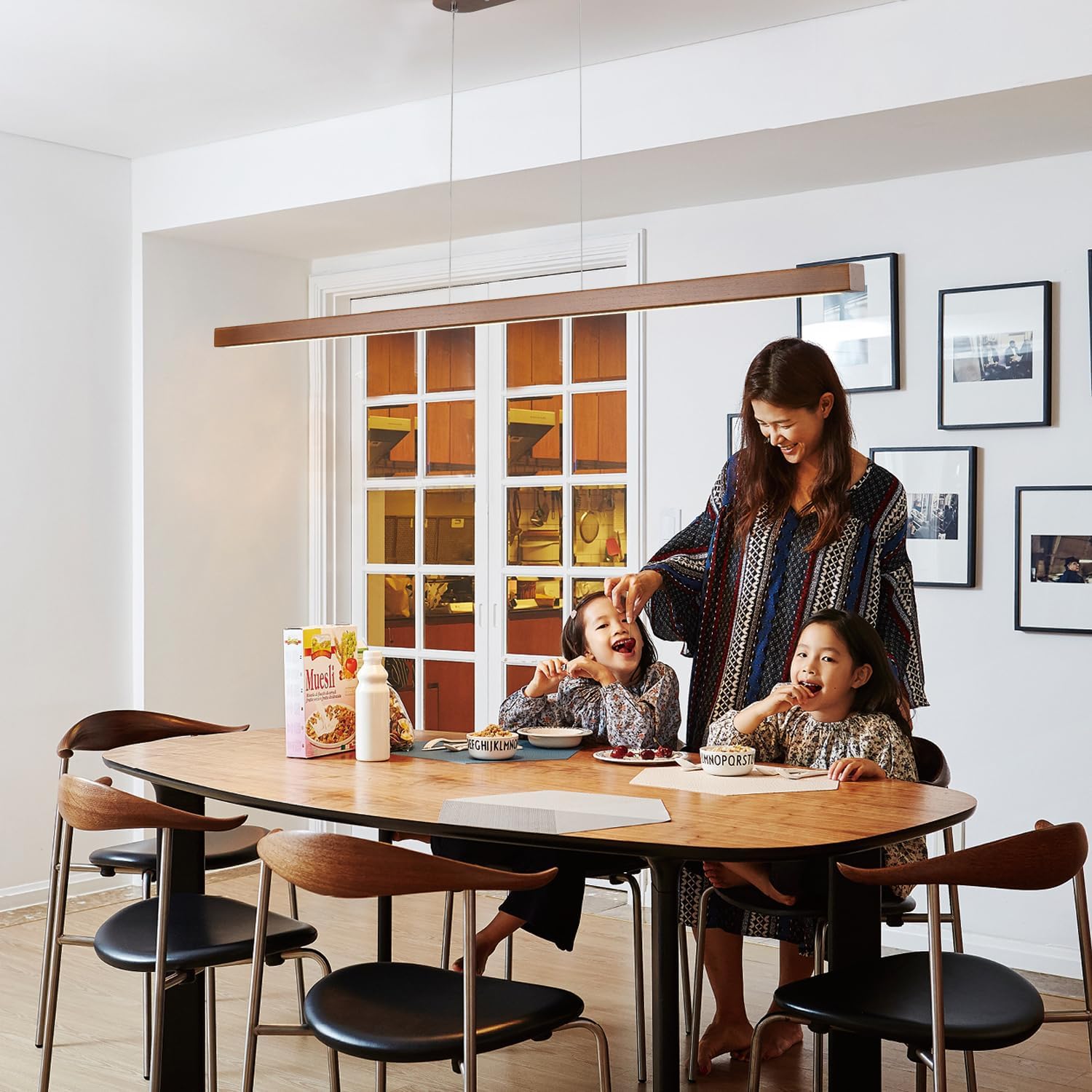 【OVERALL SOLID WOOD MATERIAL】:This is a long pole wood dining room lights, using north American ash wood,each piece of wood was carefully selected,the overall wood is not splice, each lights has been four times grinding four times spray paint pure manual complex process, showing you is a perfect art hanging light fixture .