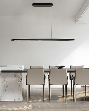 【ENERGY-SAVING LIGHTING】:This dining table light fixture is a whole 40 watt (CRI>85) energy-saving led light source life of 50000 hours,Super long life light source, late need not consider the replacement of light source.2480Lumen,Dimmable,Remote controls colortemperature and brightness.Meet your different scene lighting needs.This LED light source has no blue light and no flicker, protecting the eyes.(CRI>85)makes the food on your table look more delicious.