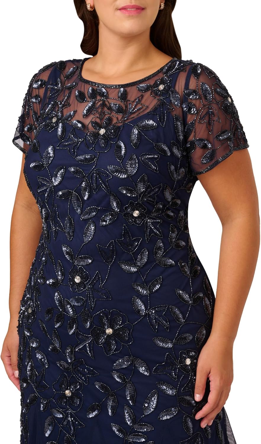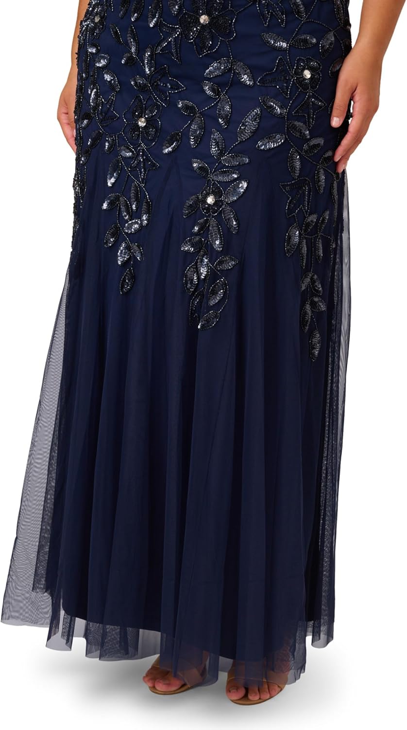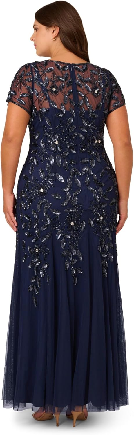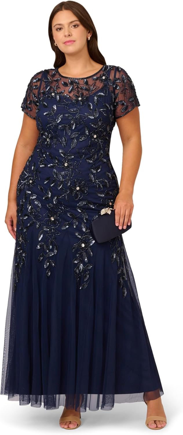 A work of art: our long and romantic gown dazzles with allover handsewn beading in a feminine floral pattern that catches the light with every twirl. A streamlined silhouette is eased with the mermaid skirt with godets to create the right amount of movement. All the details: our iconic (and flattering) no waist seam, sheer illusion yoke and cap sleeves. Sleek back zip closure. Package Dimensions : 19.17 x 18.27 x 8.58 inches; 2.66 Pounds