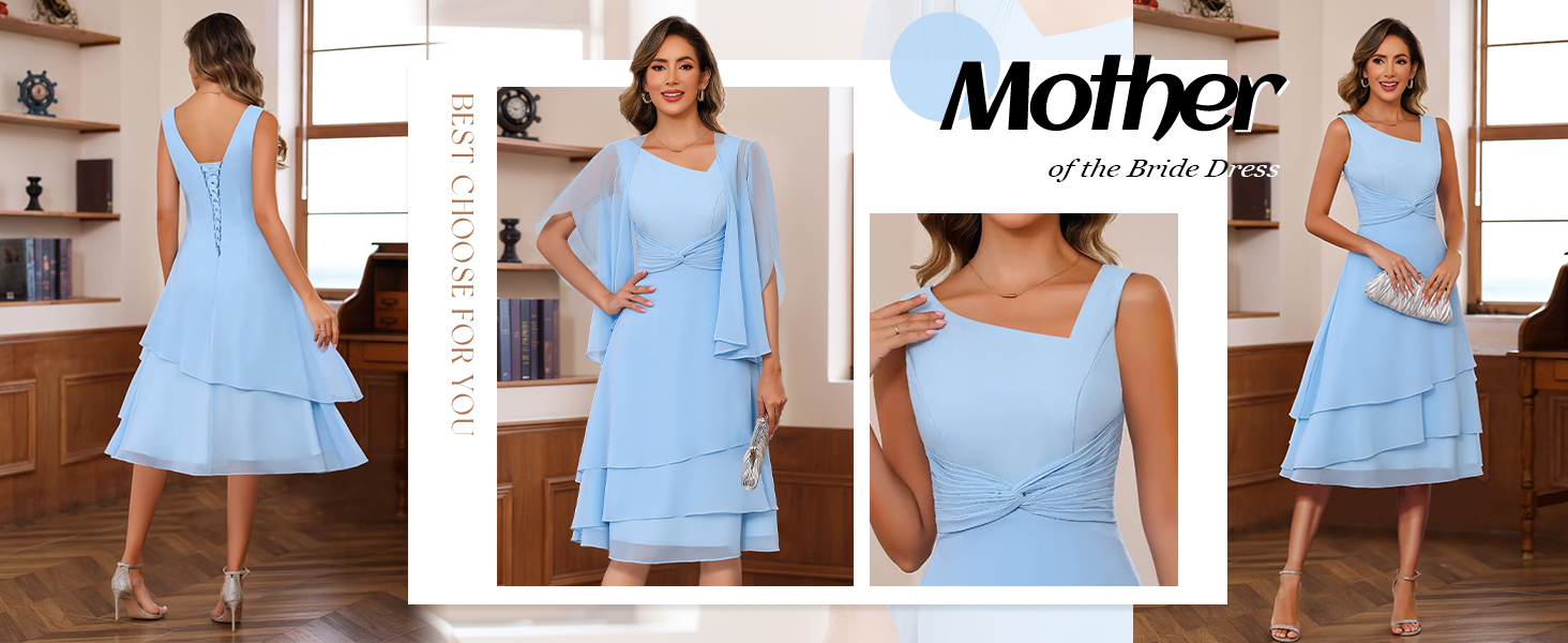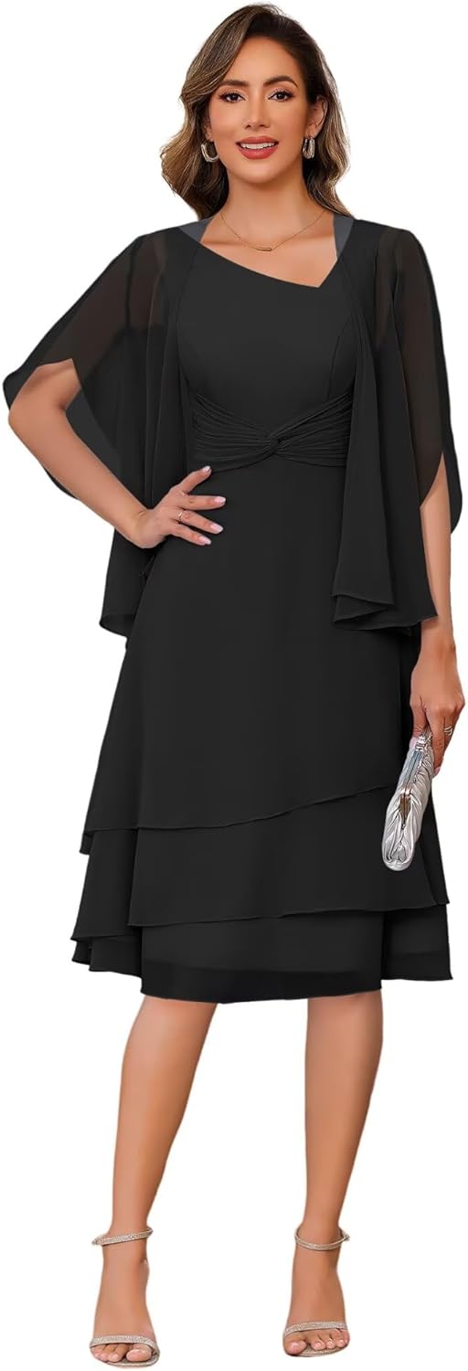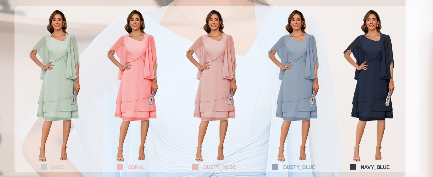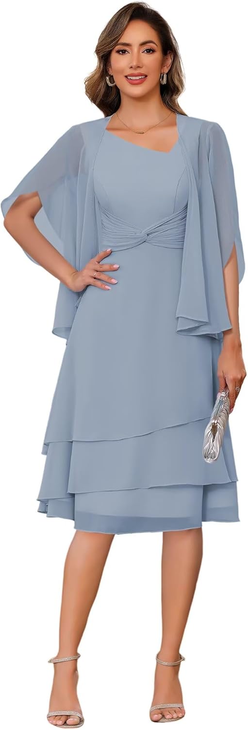 Chiffon Ruched Waist Mother of The Bride Dresses 2 Piece Mother Groom Dress