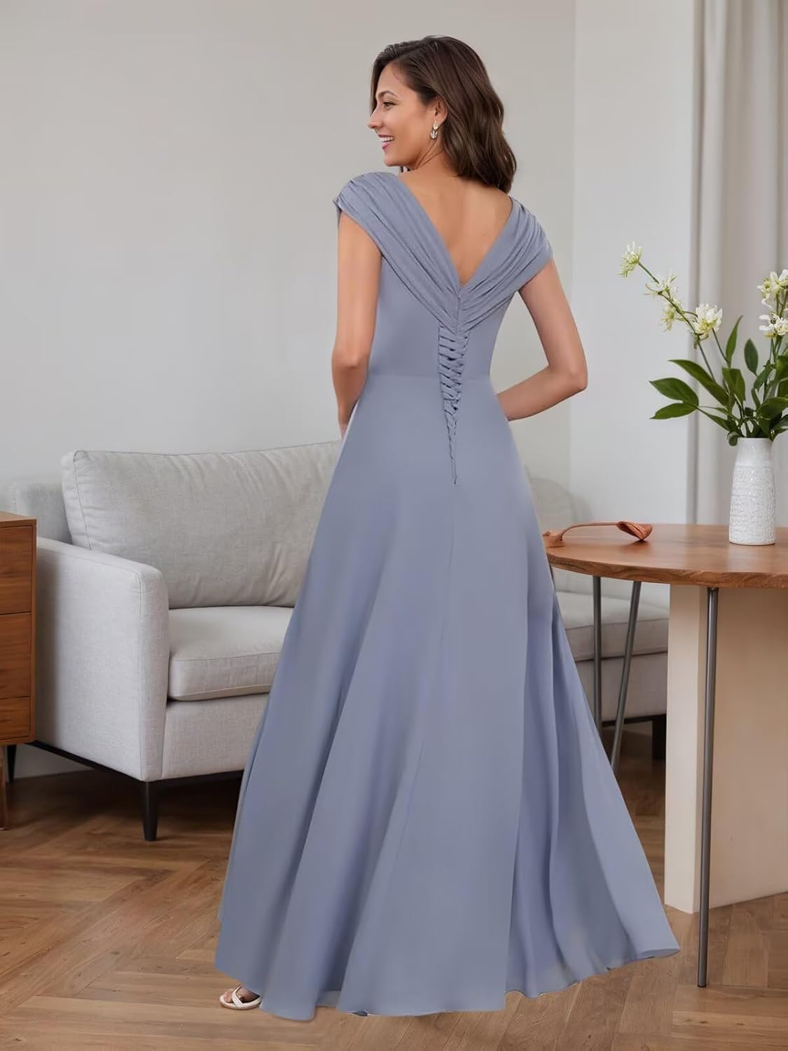 Product description Yhhkjg V Neck Chiffon Mother of the Bride Dresses Cap Sleeves Formal Dress mother of the bride dressesmother of the bride dresses
