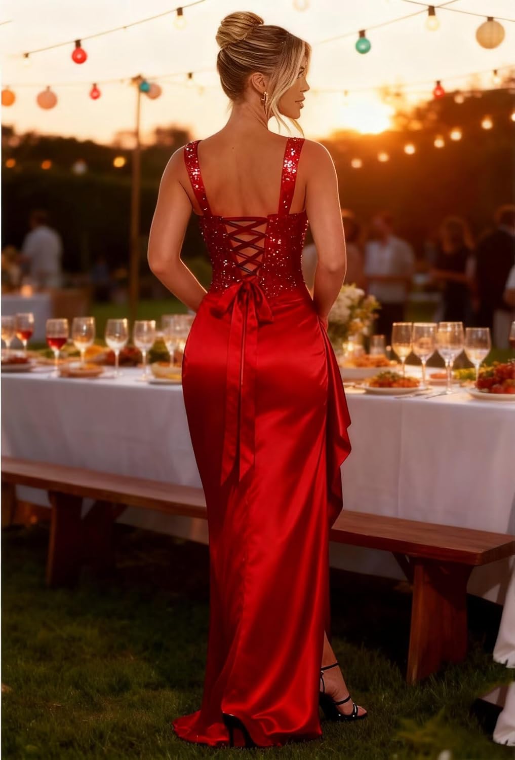 The video showcases the product in use.The video guides you through product setup.The video compares multiple products.The video shows the product being unpacked. Sparkly Sequin Prom Dresses for Women with Slit Merchant VideoSparkly Sequin Prom Dress Long 2026 Spaghetti Straps Satin Formal Gown with Slit