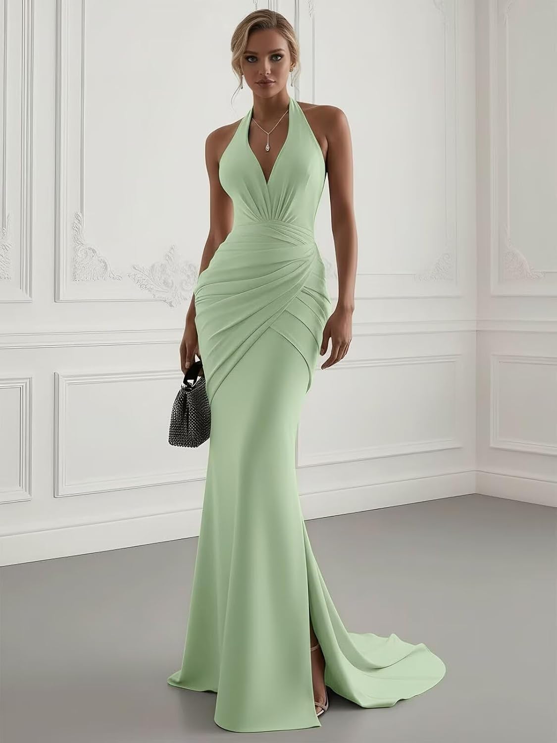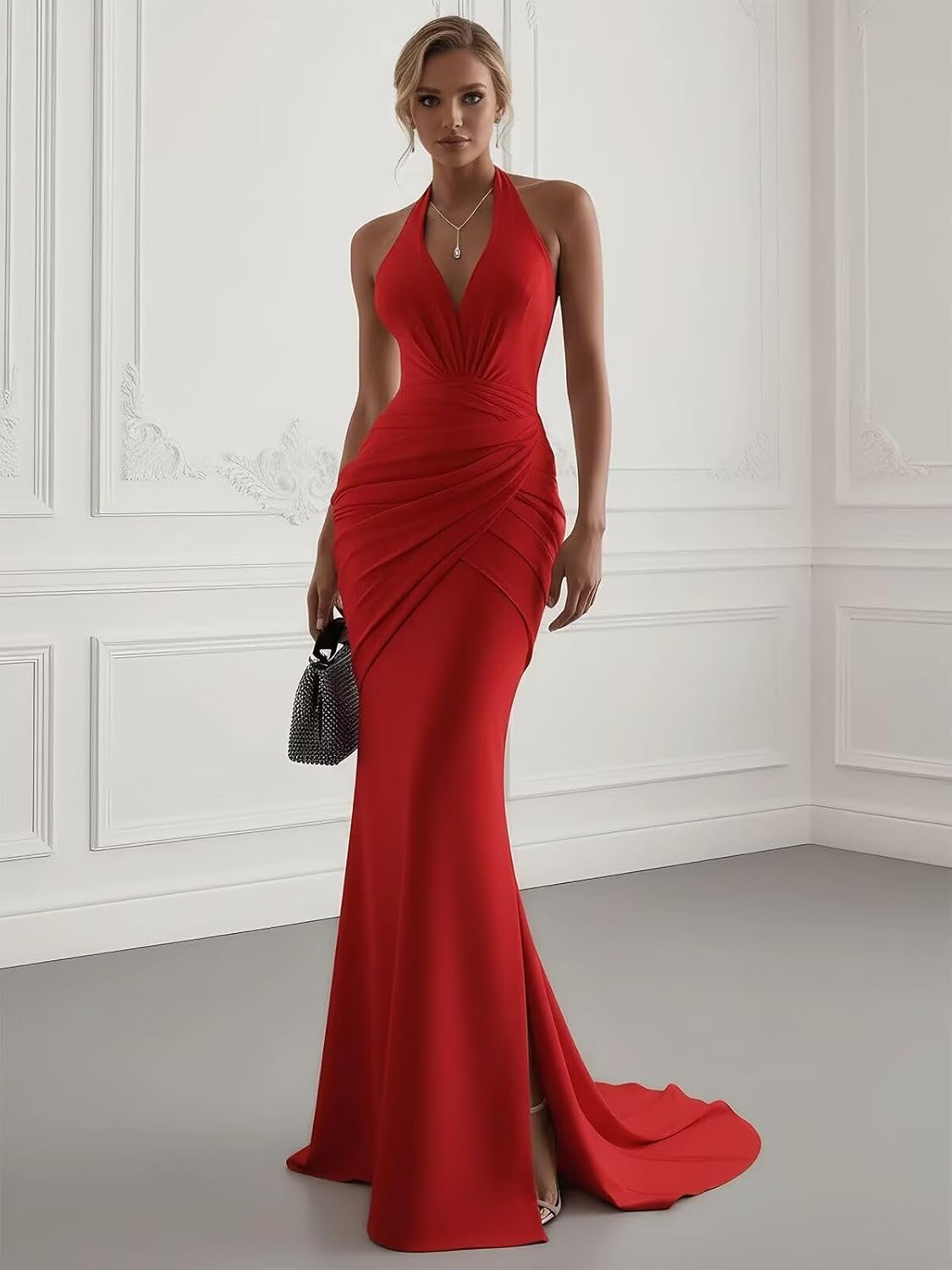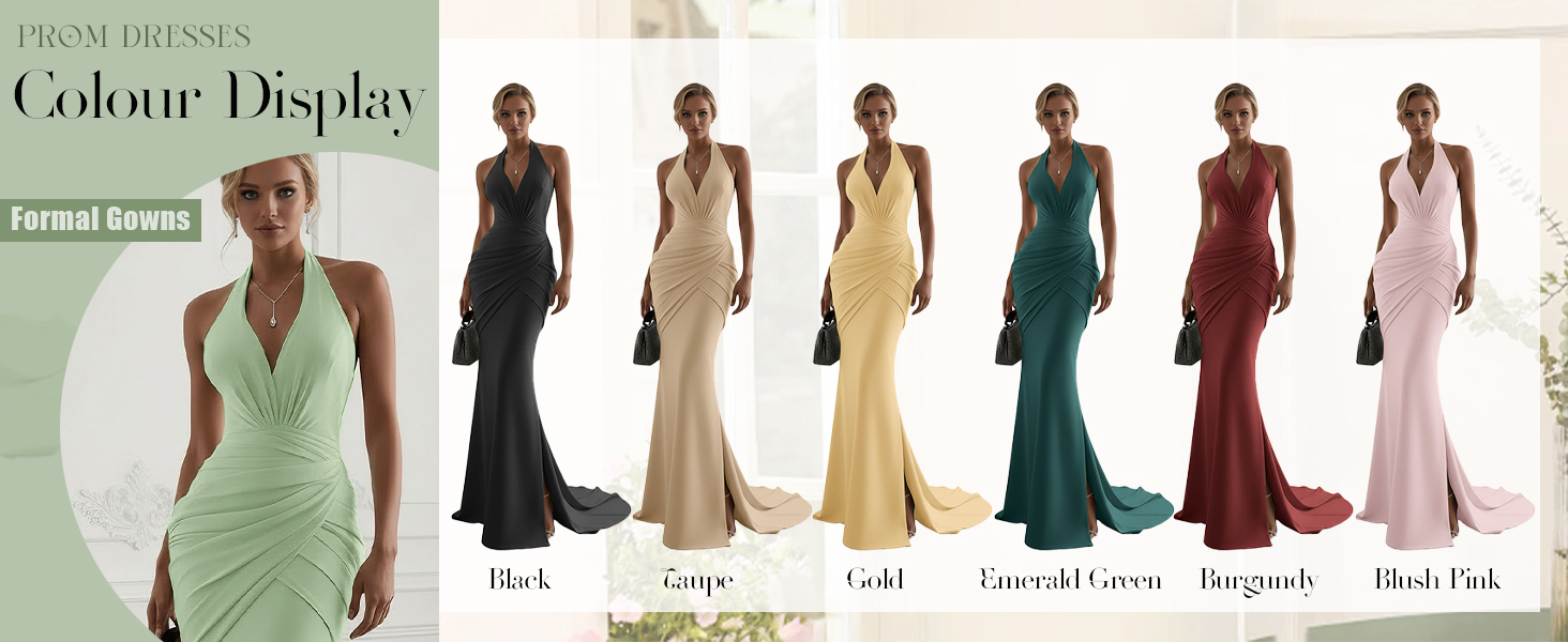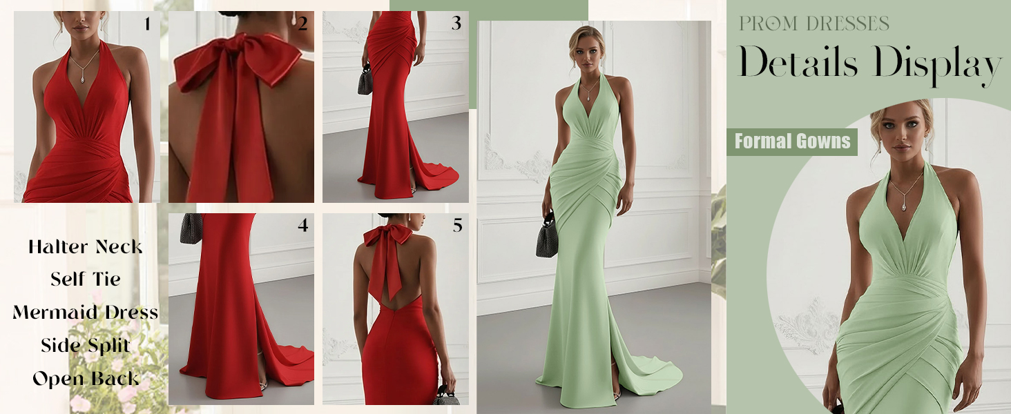 The video showcases the product in use.The video guides you through product setup.The video compares multiple products.The video shows the product being unpacked. Halter Satin Mermaid Prom Dress 2026 Merchant Video Details of Halter Neck Mermaid Formal Gowns and Evening Dresses