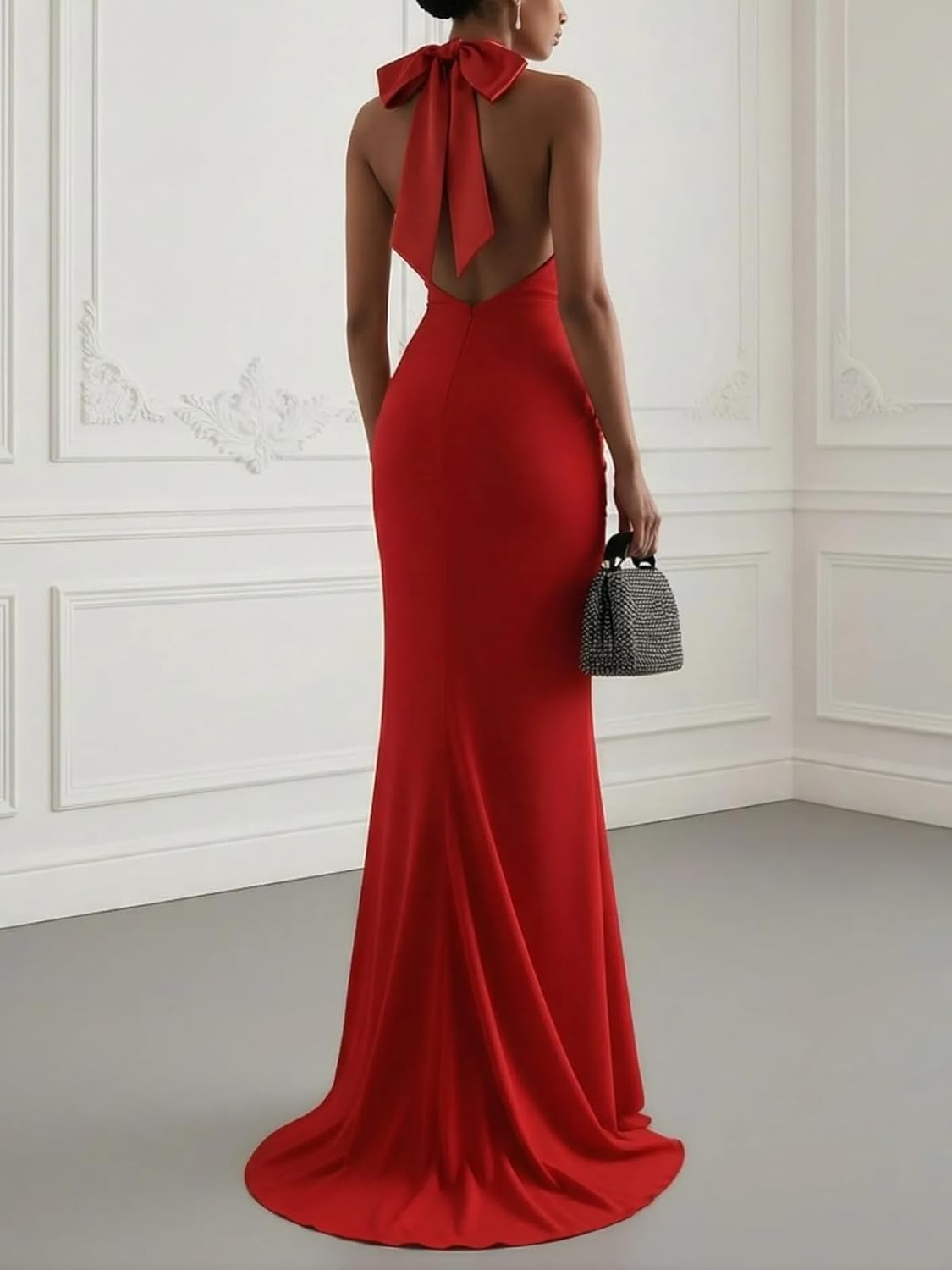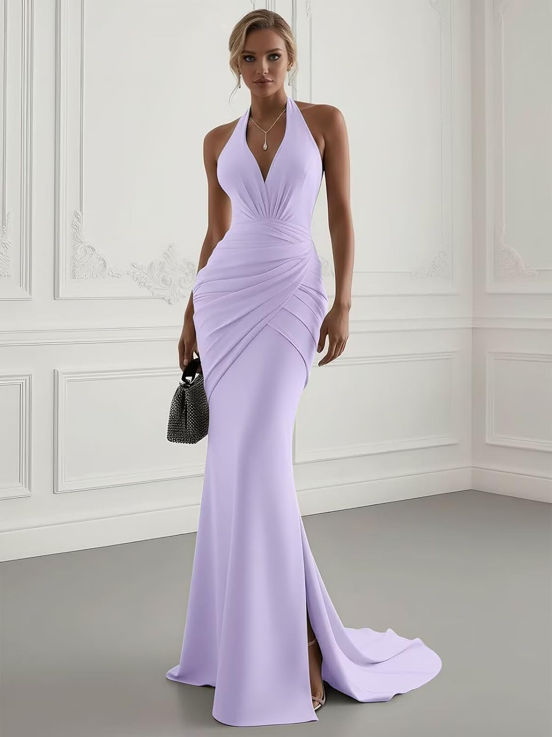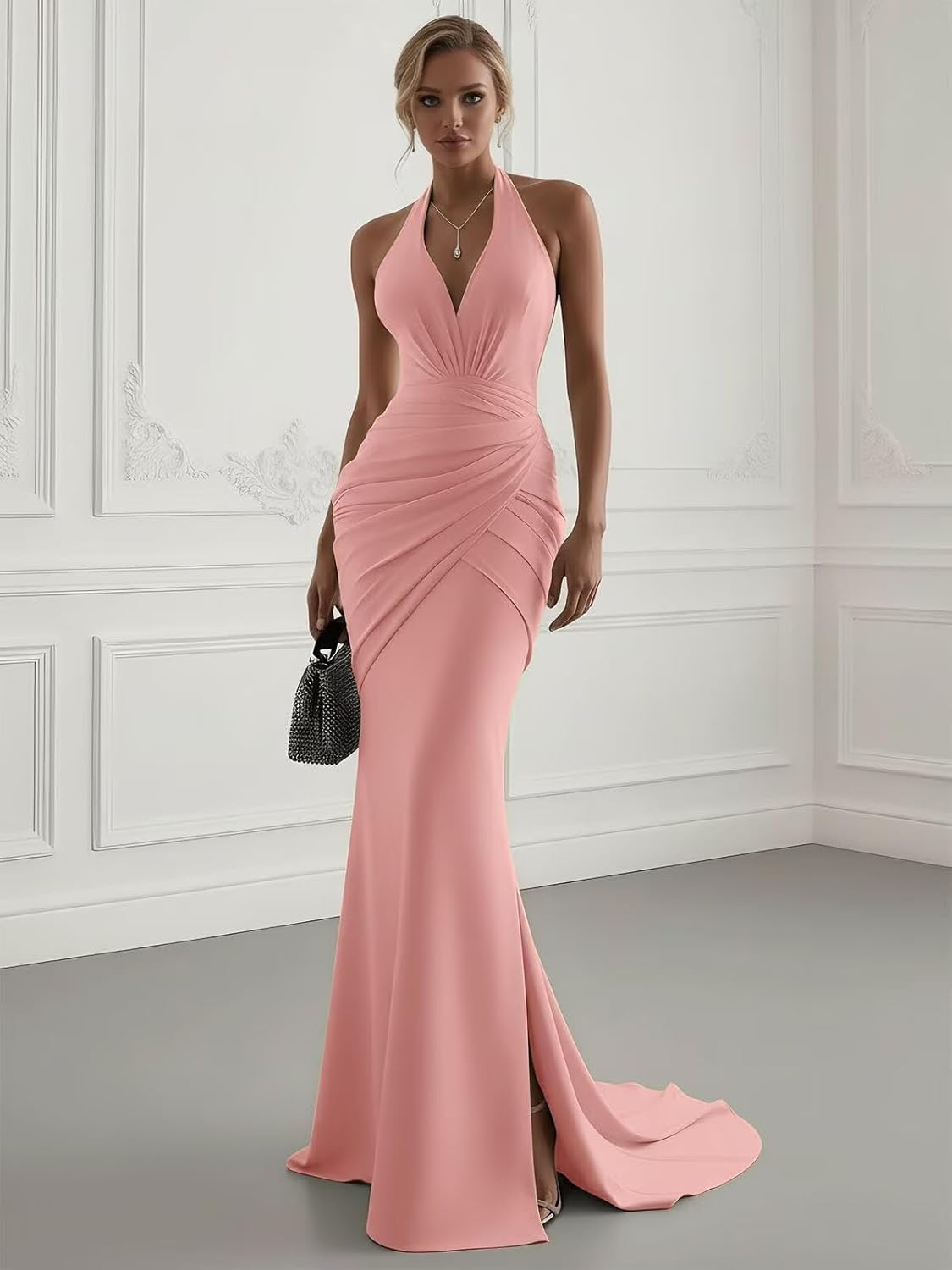 The video showcases the product in use.The video guides you through product setup.The video compares multiple products.The video shows the product being unpacked. Halter Satin Mermaid Prom Dress 2026 Merchant Video Details of Halter Neck Mermaid Formal Gowns and Evening Dresses