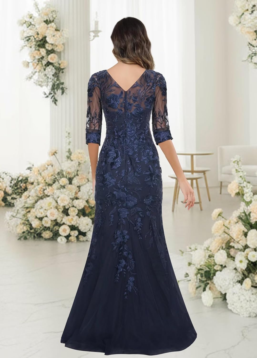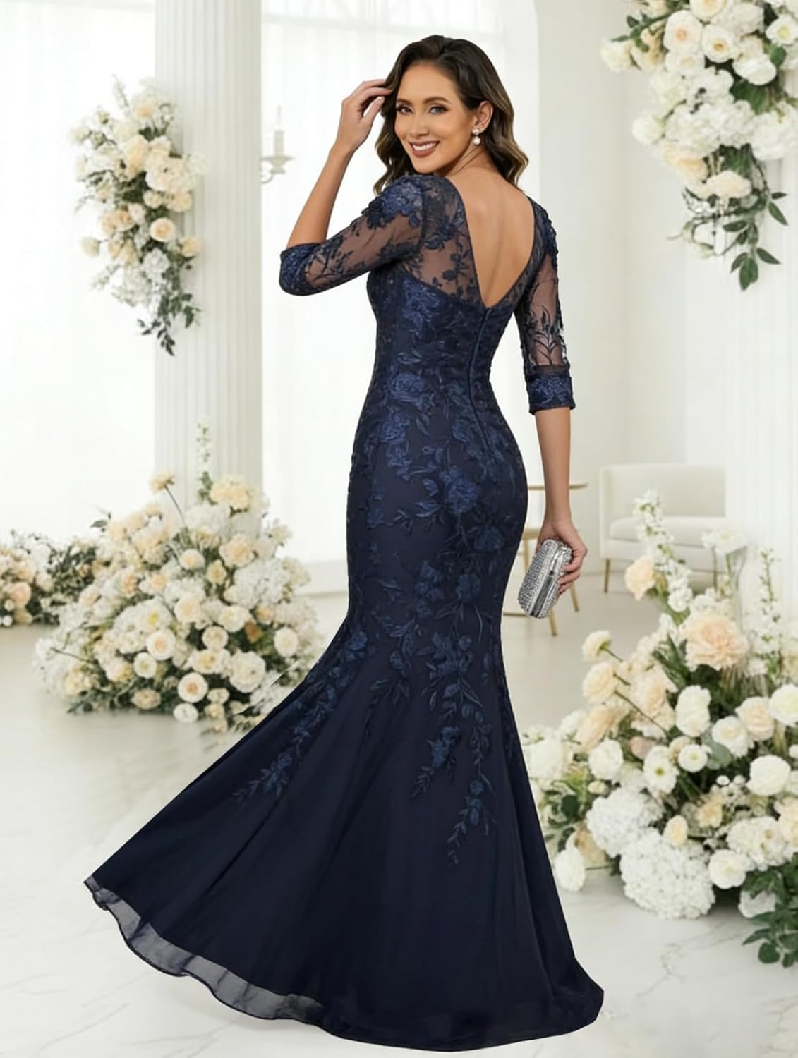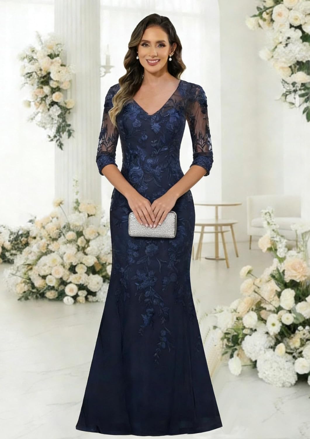 3/4 Sleeve Lace Mermaid Maxi Mother of The Groom Dress