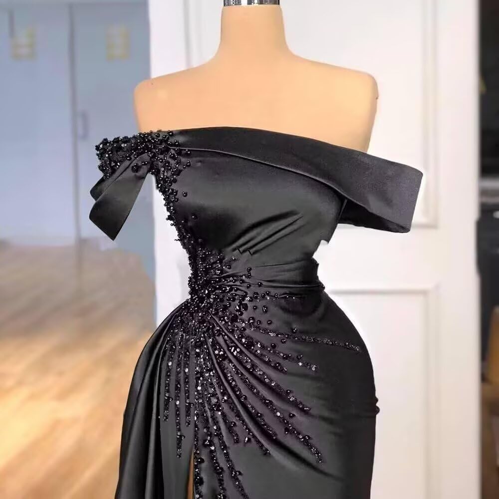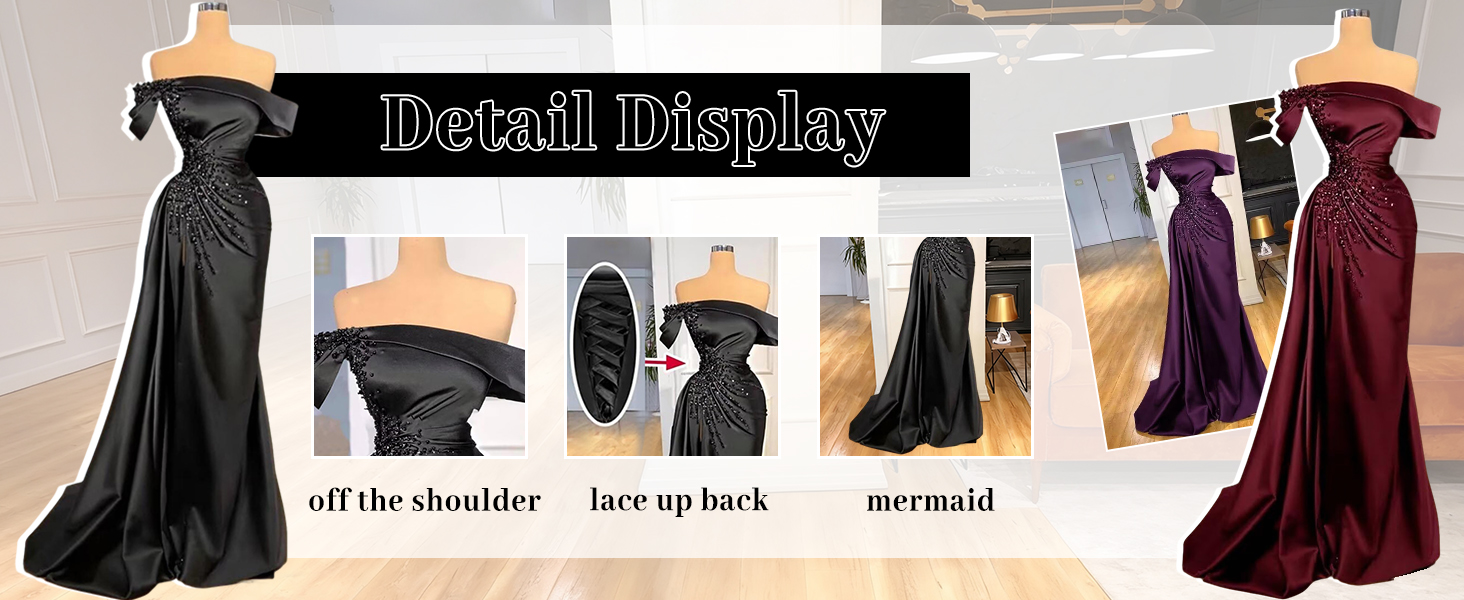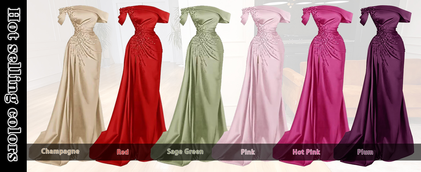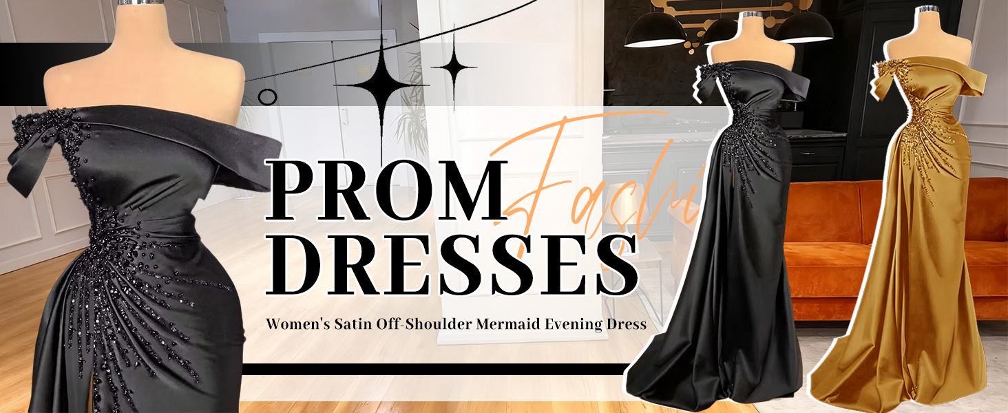 Mermaid Prom Dresses Long Off Shoulder Satin Formal Evening Dress with Slit