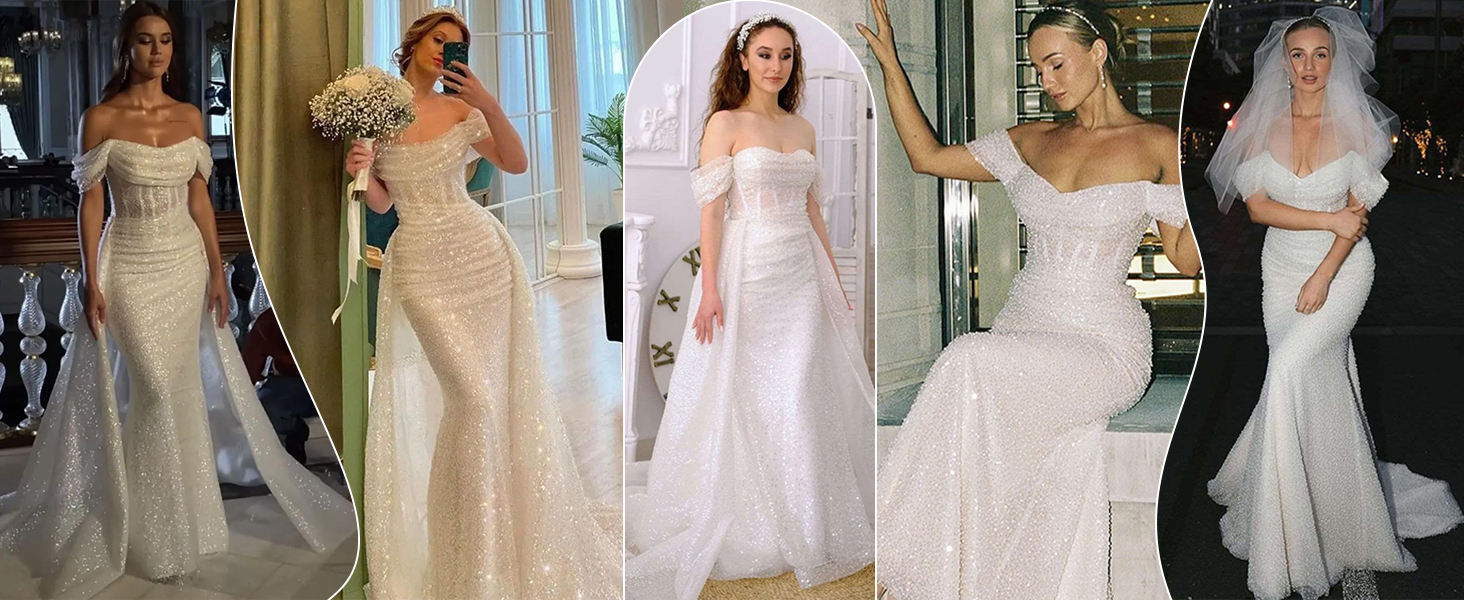 Sparkly Sequins Mermaid Prom Dress for Women 2025 Long Off Shoulder Detachable Train Formal Evening Gowns