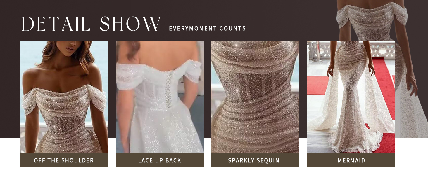 Sparkly Sequins Mermaid Off Shoulder Prom Dress with Detachable Train