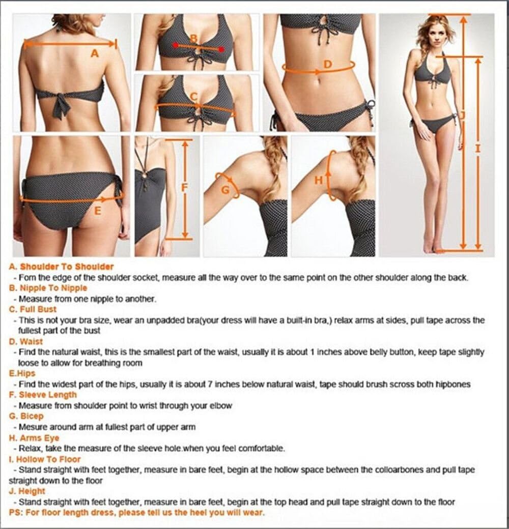 Dresses can be made according to your measurements with no more charges,the measurements we need is:1.Bust 2.Waist 3.Hips 4.Hollow(or Shoulder) to Floor 5.The height of your high heel shoes.after you place the order,pls send us your measurements and order id.