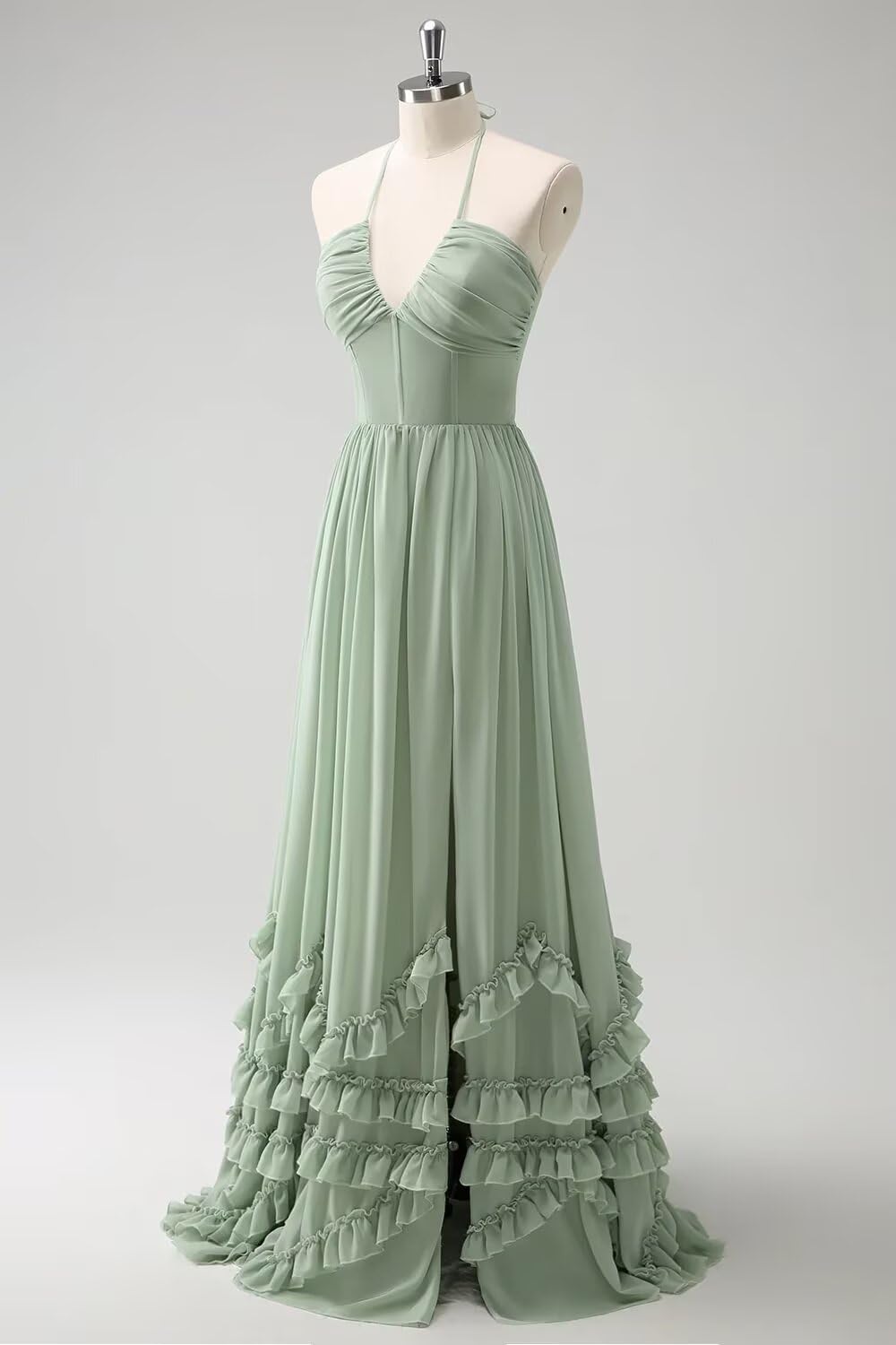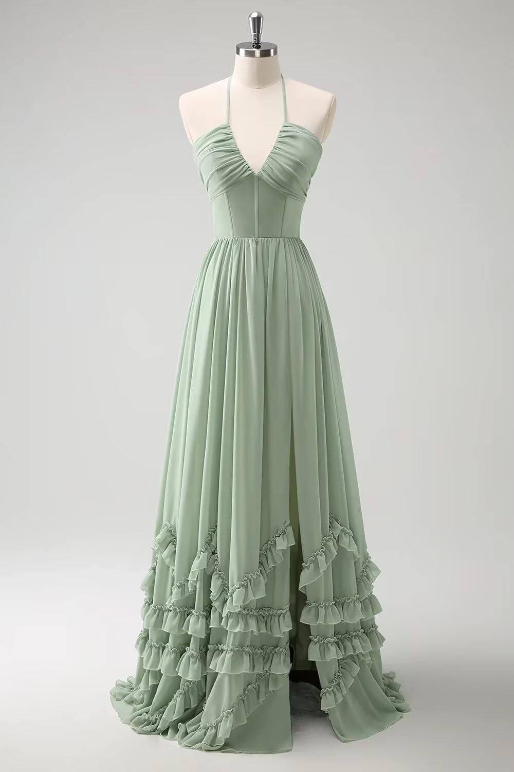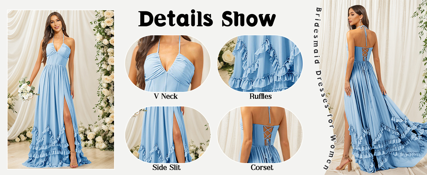 Product Details halter ruffle bridesmaid dress long chiffon corset prom dress maxi formal wedding guest party gownhalter ruffle bridesmaid dress long chiffon corset prom dress maxi formal wedding guest party gown