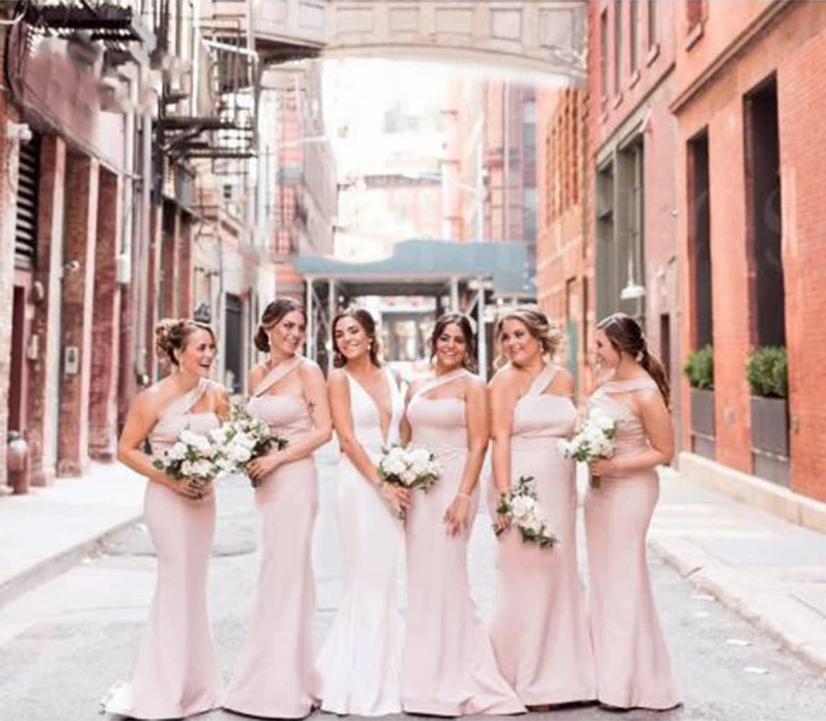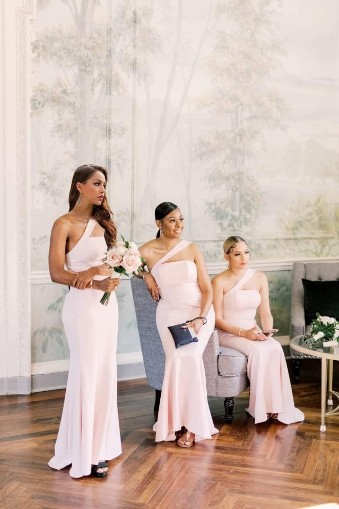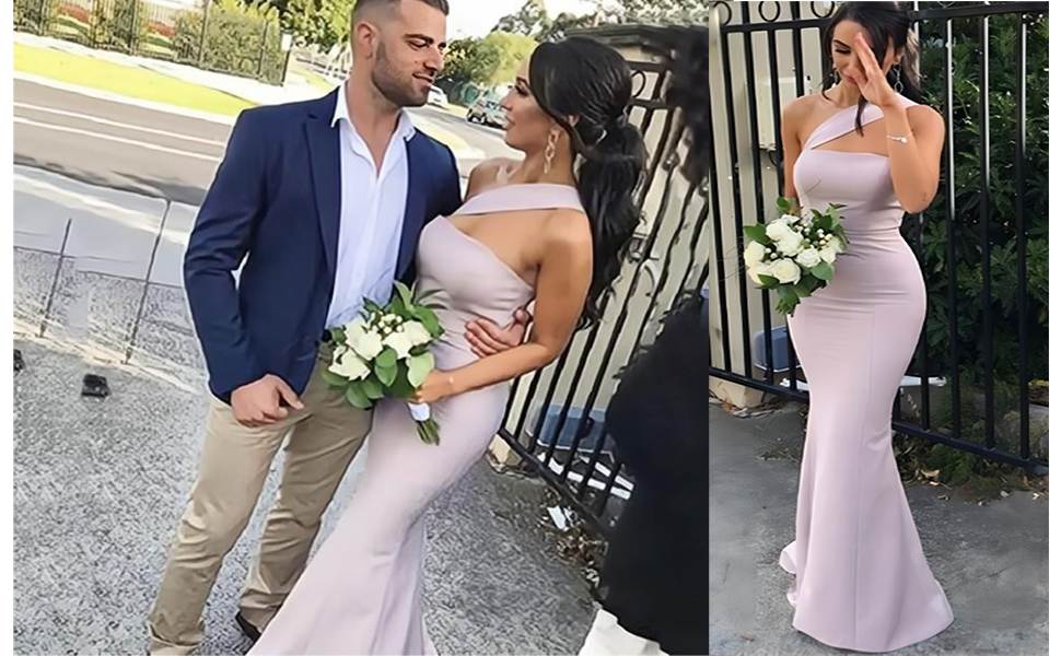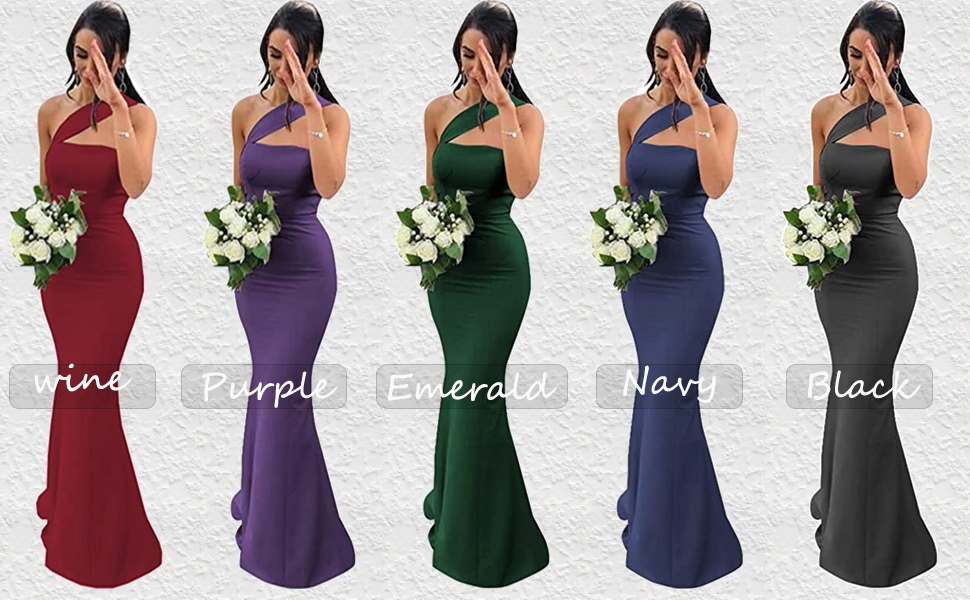 One Shoulder Mermaid Bridesmaid Dresses Satin Prom Dress Long Bodycon Formal Wedding Dress for Women Plus Size 2023